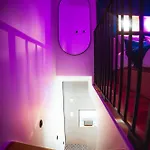 French Klss - Love Room By Prim0 C0Nciergerie has a patio, and comforts such as an air conditioner. A highlight of this property for guests is the presence of hair dryers and bath sheets in the bathroom. A tub and a separate toilet can also be found.